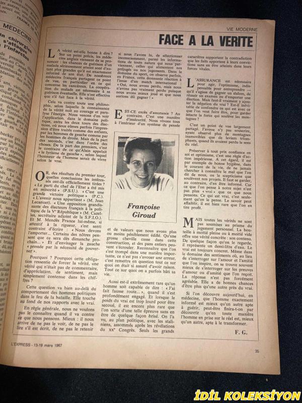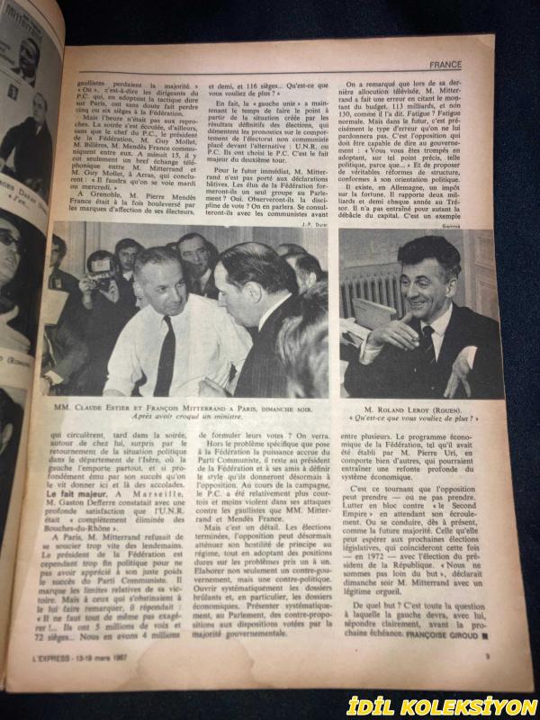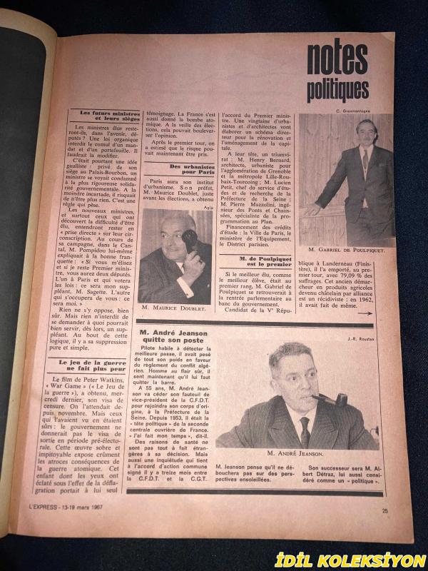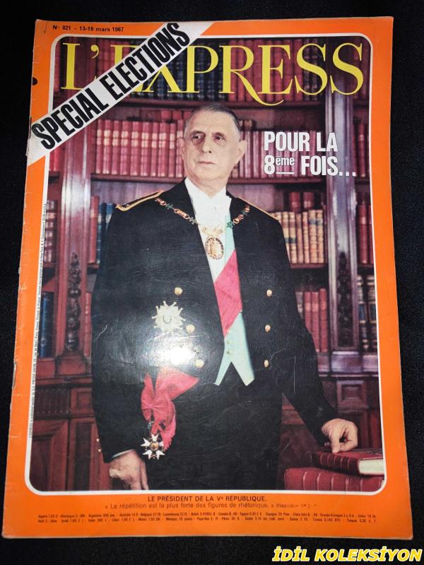 L'EXPRESS - NO-821 / 13-19 MARS 1967 / VINTAGE FRENCH MAGAZINE / 13-19 MART 1967 / LE PRESIDENT DE LA VE REPUBLIQUE / GRAND MINISTRES BATTUS - MM. MAURICE COUVE DE MURVILLE ET PIERRE MESSMER / MM. ANDRE MALRAUX / JEAN CHARBONNEL / MM. LEO HAMON ET GEORGES POMPIDOU A MATIGNON , DIMANCHE SOIR / M. GEORGES DAYAN / M. LOUIS MERMAZ / ROLAND LEROY / CLAUDE ESTIER ET FRANÇOIS MITTERRAND / FREDERIC DUPONT / YVES ALLAINMAT / WALDECK ROCHET / GUY MOLLET / UN DOSSIER INTOUCHABLE / ROGER PRIOURET / LE DERNIER DES KRUPP / JAMES HOFFA / LA PREMIERE VICTIME DE ROBERT KENNEDY / SVETLANA ET STAILEN EN 1942 / M. GORDON DIT NON AUX CAPITAUX AMERICAINS / MAINTENAN LA GUERRE VA COMMENCER / ANDRE JEANSON / MAURICE DOUBLET / GABRIEL DE POULPIQUET / ALBIN CHALANDON / JEAN CHRISTIAN BARBE / SERGIO PININFARINA / UNE AMERICAINE JUGE LES FRANÇAISES / FRANÇOISE GİROUD / LE CHIC DE SCOTT FITZGERALD / BELAID ABDESSELAM / RAYMOND DAILEY / HENRI TROYAT / MARCEL DUCHAMP / JEAN FRANCOIS REVEL / ALBERT EINSTEIN