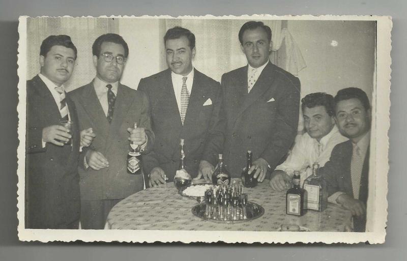 ** LİKÖR ŞİŞELERİ VE LİKÖR SEVEN BEYLERİN FOTOĞRAF ** Yaklaşık olarak kartpostal ebadında,arkası yazısız, çok iyi kondüsyonda,eski likör şişeleri konulu nadir fotoğraftır...