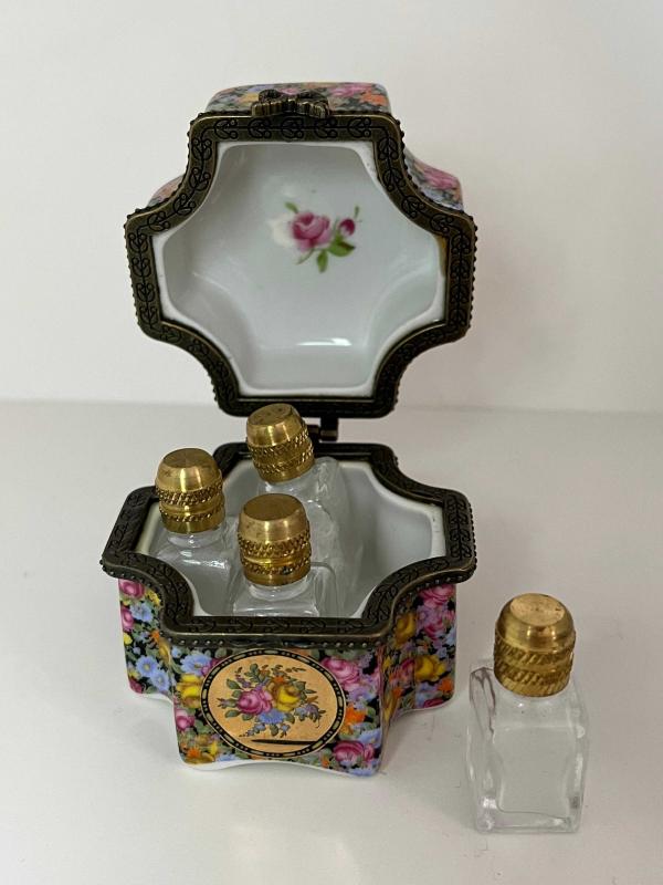 LİMOGES FRANCE ORJİNAL DAMGALI LİMOGES KOKU KUTUSU İÇİNDE 4 ADET PRİNÇ KAPAKLI KOKU ŞİŞESİ MEVCUTTUR