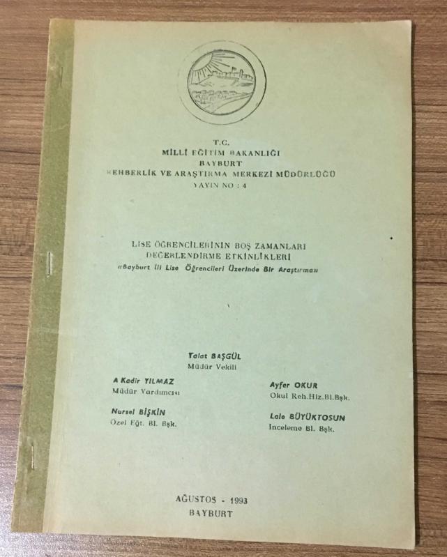 LİSE ÖĞRENCİLERİNİN BOŞ ZAMANLARI DEĞERLENDİRME ETKİNLİKLERİ Bayburt İli Lise Öğrencileri Üzerinde Bir Araştırma, TALAT BAŞGÜL-A.K.YILMAZ-AYFER OKUR tarafından kaleme alınmıştır. Kitap 1993 yılında BAYBURT REHBERLİK VE ARAŞTIRMA MERKEZİ tarafından [BAYBURT ] yayınlanmıştır. 40 sayfadır. LİSE ÖĞRENCİLERİNİN BOŞ ZAMANLARI DEĞERLENDİRME ETKİNLİKLERİ Bayburt İli Lise Öğrencileri Üzerinde Bir Araştırma adlı eser Türkçe dilindedir.