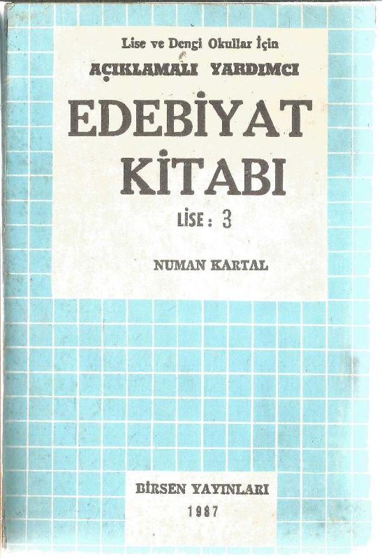 LİSE VE DENGİ OKULLAR İÇİN AÇIKLAMALI YARDIMCI EDEBİYAT KİTABI LİSE: 3, NUMAN KARTAL tarafından kaleme alınmıştır. Kitap BİRSEN YAYINLARI tarafından yayınlanmıştır. 438 sayfadır. LİSE VE DENGİ OKULLAR İÇİN AÇIKLAMALI YARDIMCI EDEBİYAT KİTABI LİSE: 3 adlı eser Türkçe dilindedir.