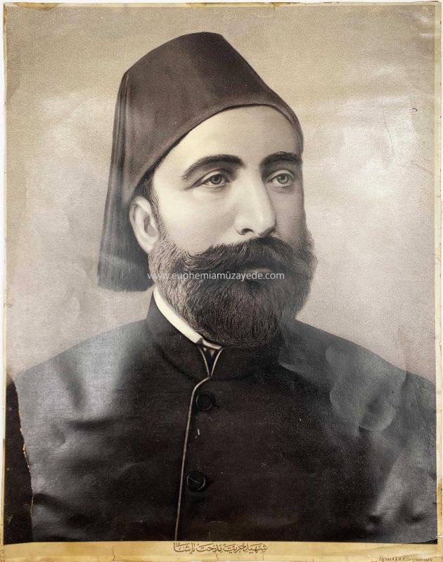 [LİTOGRAF AFİŞ] Osmanlıca "Şehid-i hürriyet Mithat Paşa" portre (Osmanlı dönemi taşbaskı). Edition: A. & H.K. Constantinople, en son 7 ay önce güncellenmiştir.