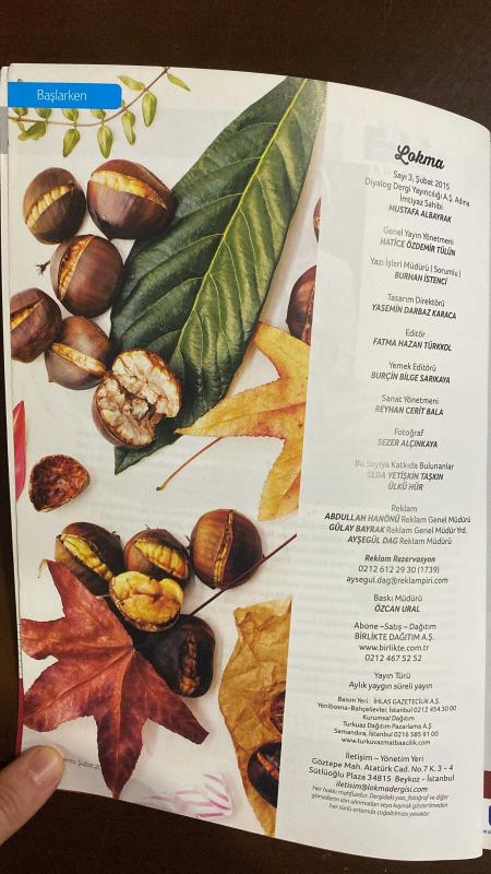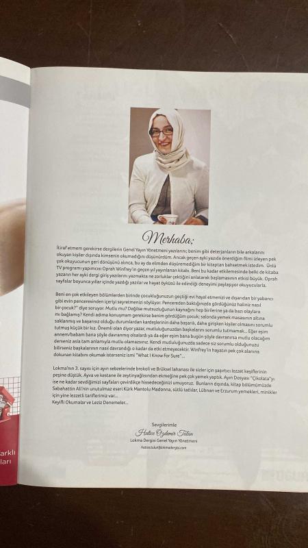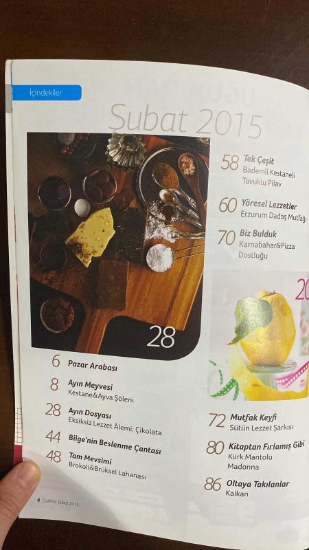 LOKMA DERGİSİ -ŞUBAT 2015 – SAYI:3 MUSTAFA ALBAYRAK - HATİCE ÖZDEMİR TÜLÜN - BURHAN İSTENCİ - YASEMİN DARBAZ KARACA - FATMA HAZAN TÜRKKOL - BURÇİN BİLGE SARIKAYA - REYHAN CERİT BALA - SEZER ALÇINKAYA - SEDA YETİŞKİN - TAŞKIN ÜLKÜ HÜR - ABDULLAH HANÖNÜ - GÜLAY BAYRAK - AYŞEGÜL DAĞ - ÖZCAN URAL - OPRAH WINFREY - SABAHATTİN ALİ PAZAR ARABASI - AYIN MEYVESİ / KESTANE & AYVA ŞÖLENİ - AYIN DOSYASI / ÇİKOLATA - BİLGE’NİN BESLENME ÇANTASI - TAM MEVSİMİ / BROKOLİ & BRÜKSEL LAHANASI - MUTFAK KEYFİ / SÜTÜN LEZZET ŞARKISI - KİTAPTAN FIRLAMIŞ GİBİ / KÜRK MANTOLU MADONNA - OLTAYA TAKILANLAR / KALKAN - YÖRESEL LEZZETLER / ERZURUM DADAŞ MUTFAĞI - TEK ÇEŞİT / BADEMLİ KESTANELİ TAVUKLU PİLAV - KURUTULMUŞ SEBZE SEFASI - DÜNYA MUTFAĞI / LÜBNAN - AJANDA - LOKMALIK - 112 SAYFA, BİGE DURAGA ÇALIŞKAN tarafından kaleme alınmıştır. Eser NEVZAT ÇALIŞKAN editörlüğünde hazırlanmıştır. Kitap . tarafından [DOĞAN MEDYA CENTER] yayınlanmıştır. 112 sayfadır. LOKMA DERGİSİ -ŞUBAT 2015 – SAYI:3 MUSTAFA ALBAYRAK - HATİCE ÖZDEMİR TÜLÜN - BURHAN İSTENCİ - YASEMİN DARBAZ KARACA - FATMA HAZAN TÜRKKOL - BURÇİN BİLGE SARIKAYA - REYHAN CERİT BALA - SEZER ALÇINKAYA - SEDA YETİŞKİN - TAŞKIN ÜLKÜ HÜR - ABDULLAH HANÖNÜ - GÜLAY BAYRAK - AYŞEGÜL DAĞ - ÖZCAN URAL - OPRAH WINFREY - SABAHATTİN ALİ PAZAR ARABASI - AYIN MEYVESİ / KESTANE & AYVA ŞÖLENİ - AYIN DOSYASI / ÇİKOLATA - BİLGE’NİN BESLENME ÇANTASI - TAM MEVSİMİ / BROKOLİ & BRÜKSEL LAHANASI - MUTFAK KEYFİ / SÜTÜN LEZZET ŞARKISI - KİTAPTAN FIRLAMIŞ GİBİ / KÜRK MANTOLU MADONNA - OLTAYA TAKILANLAR / KALKAN - YÖRESEL LEZZETLER / ERZURUM DADAŞ MUTFAĞI - TEK ÇEŞİT / BADEMLİ KESTANELİ TAVUKLU PİLAV - KURUTULMUŞ SEBZE SEFASI - DÜNYA MUTFAĞI / LÜBNAN - AJANDA - LOKMALIK - 112 SAYFA adlı eser Türkçe dilindedir.