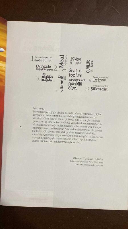 LOKMADERGİSİ - EKİM 2016 – SAYI:23 - ELMA ARMUT AYIN MEYVESİ - TAM MEVSİMİ : SON BAHAR SEBZELERİ - OLTAYA TAKINLANLAR - PALAMUT - YÖRESEL LEZZETLER SİVAS - LOKMA PASTANESİ MEKİK - MUSTAFA ALBAYRAK - HATİCE ÖZDEMİR TÜLÜN - BURHAN İSTENCİ - YASEMİN DARBAZ KARACA - REYHAN CERİT BALA - BURÇİN BİLGE - TUBA ÖZTÜRK ÖZDİL - SEZER ALÇINKAYA - MELİS KAYACIK - ABDULLAH HANÖNÜ - ZİYA KADAM - GÜLAY BAYRAK - AYŞEGÜL DAĞ - KADER EKEN - ABDULLAH BİLGİÇ - ÖZCAN URAL PAZAR ARABASI - TAM MEVSİMİ / SONBAHAR SEBZELERİ - AYIN MEYVESİ / ELMA & ARMUT - LOKMA PASTANESİ / MEKİK - ÖZEL DOSYA / SÜTLÜ TATLILAR - YÖRESEL LEZZETLER / SİVAS - TEK ÇEŞİT / GILNIŞ - AYIN DOSYASI / YAĞMURA EŞLİK EDEN ÇAY SOFRASI - MUCİZE İÇECEKLER - KİTAPTAN FIRLAMIŞ GİBİ / ÇAVDAR TARLASINDA ÇOCUKLAR - OLTAYA TAKILANLAR / PALAMUT - MUTFAĞA GİRİŞ - LOKMALIK - AJANDA - İNDEKS - 112 SAYFA, BİGE DURAGA ÇALIŞKAN tarafından kaleme alınmıştır. Eser NEVZAT ÇALIŞKAN editörlüğünde hazırlanmıştır. Kitap . tarafından [DOĞAN MEDYA CENTER] yayınlanmıştır. 112 sayfadır. LOKMADERGİSİ - EKİM 2016 – SAYI:23 - ELMA ARMUT AYIN MEYVESİ - TAM MEVSİMİ : SON BAHAR SEBZELERİ - OLTAYA TAKINLANLAR - PALAMUT - YÖRESEL LEZZETLER SİVAS - LOKMA PASTANESİ MEKİK - MUSTAFA ALBAYRAK - HATİCE ÖZDEMİR TÜLÜN - BURHAN İSTENCİ - YASEMİN DARBAZ KARACA - REYHAN CERİT BALA - BURÇİN BİLGE - TUBA ÖZTÜRK ÖZDİL - SEZER ALÇINKAYA - MELİS KAYACIK - ABDULLAH HANÖNÜ - ZİYA KADAM - GÜLAY BAYRAK - AYŞEGÜL DAĞ - KADER EKEN - ABDULLAH BİLGİÇ - ÖZCAN URAL PAZAR ARABASI - TAM MEVSİMİ / SONBAHAR SEBZELERİ - AYIN MEYVESİ / ELMA & ARMUT - LOKMA PASTANESİ / MEKİK - ÖZEL DOSYA / SÜTLÜ TATLILAR - YÖRESEL LEZZETLER / SİVAS - TEK ÇEŞİT / GILNIŞ - AYIN DOSYASI / YAĞMURA EŞLİK EDEN ÇAY SOFRASI - MUCİZE İÇECEKLER - KİTAPTAN FIRLAMIŞ GİBİ / ÇAVDAR TARLASINDA ÇOCUKLAR - OLTAYA TAKILANLAR / PALAMUT - MUTFAĞA GİRİŞ - LOKMALIK - AJANDA - İNDEKS - 112 SAYFA adlı eser Türkçe dilindedir.