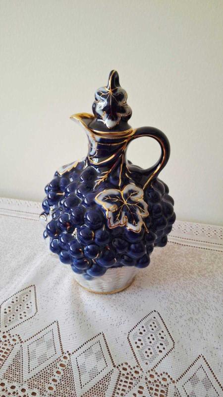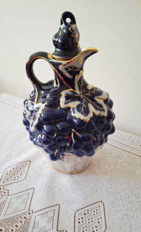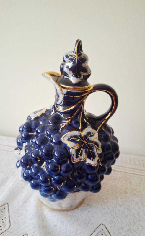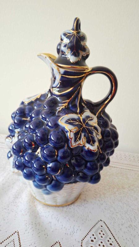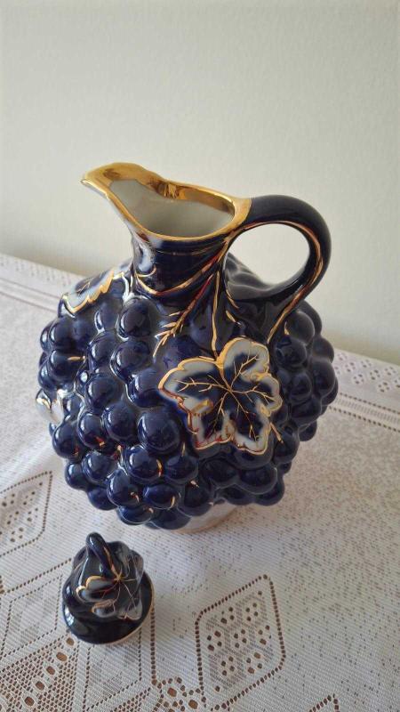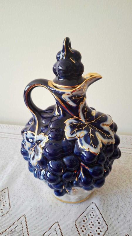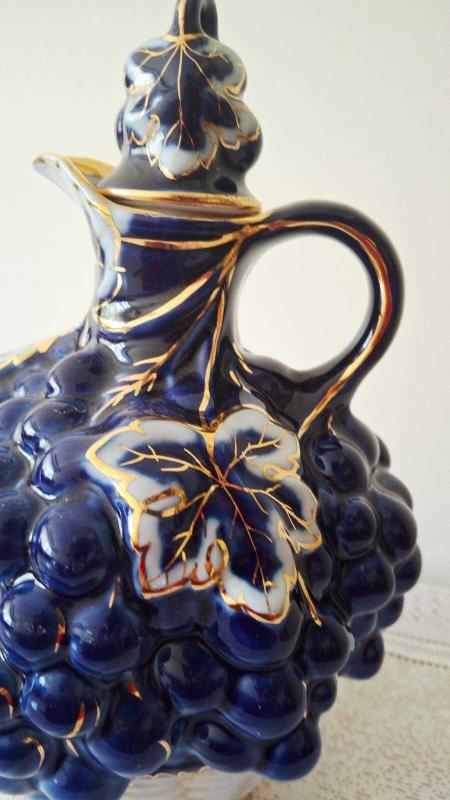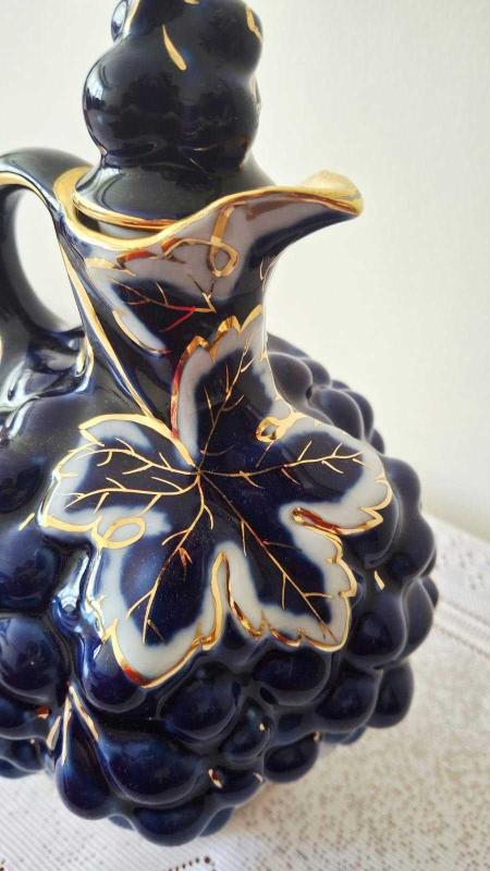 Eski rus damgalı kobalt mavi ve altının Muhteşem uyumu 🌸üzüm ve üzüm yaprağı kabartmalı karaf kusursuz durumda