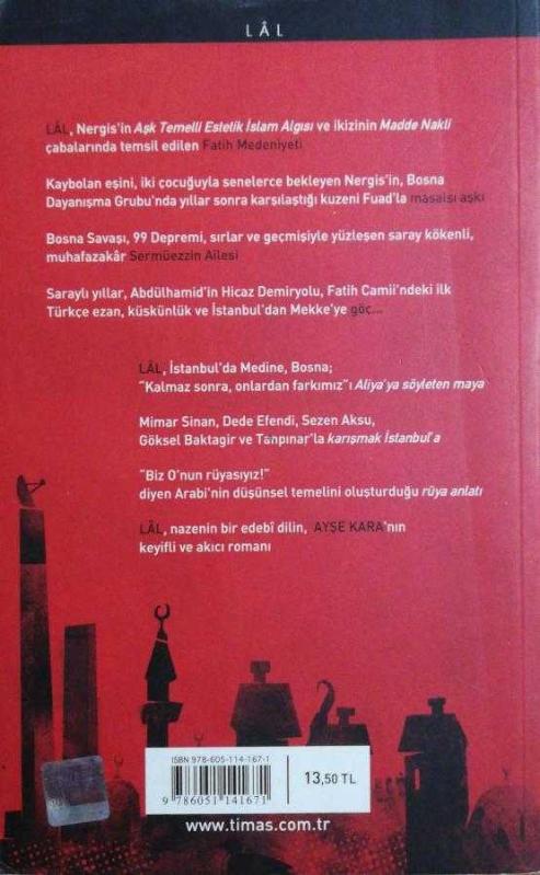 Lal, Ayşe Kara tarafından kaleme alınmıştır. Kitap 2010 yılında Timaş Yayınları tarafından yayınlanmıştır. 344 sayfadır. Lal adlı eser Türkçe dilindedir.