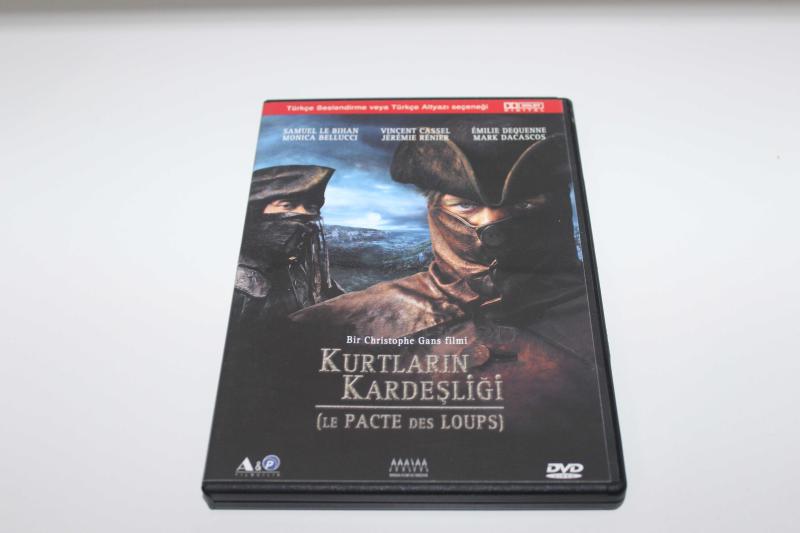 Lütfen dikkat: Şahsi koleksiyonumdaki ürünleri satıyorum, dolayısıyla fatura kesmem mümkün değil. Anlayışınız için teşekkürler. 2001 yapımı Le Pacte Des Loups (Brotherhood of The Wolf) filmi. Bizde "Kurtların Kardeşliği" adıyla oynadı. Başrollerde Samuel Le Bihan, Vincent Cassel, Monica Bellucci, Mark Dacascos var. Anlatımı biraz karışık olsa da görsellik açısından şahane bir film. Yönetmen Christophe Gans. Film Türkiye baskısıdır. Türkçe dublaj ve altyazı VAR. Fransızca seslendirme var.