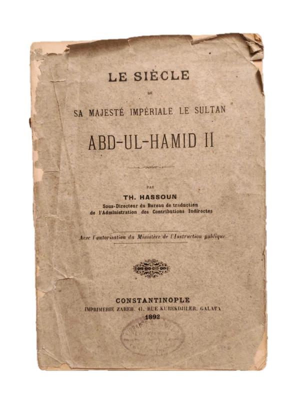 Le Siecle de sa Majeste imperiale le Sultan Abd-ul-hamid II [ Sultan II. Abdülhamid ] [ YAZARINDAN İTHAFLI İMZALI ], TH. (Thomas) Hassoun tarafından kaleme alınmıştır. Kitap 1892 yılında Imprimerie Zareh tarafından [Galata - Kürekçiler Caddesi - İstanbul] yayınlanmıştır. 153 sayfadır. Le Siecle de sa Majeste imperiale le Sultan Abd-ul-hamid II [ Sultan II. Abdülhamid ] [ YAZARINDAN İTHAFLI İMZALI ] adlı eser Fransızca dilindedir.