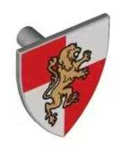 Lego 3846pb027 Minifigür, Üçgen Kalkan Kırmızı ve Beyaz Altın Aslanlı Desen başlıklı antika/koleksiyon objesi Amerika menşe’lidir. 2000 ve sonrası dönemine aittir.