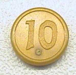 Lego Minifigür bb0302 10 İşaretli Tip 2 Eşya Madeni Parası (Altır rengi) 6 adet başlıklı antika/koleksiyon objesi Amerika menşe’lidir. 2000 ve sonrası dönemine aittir.
