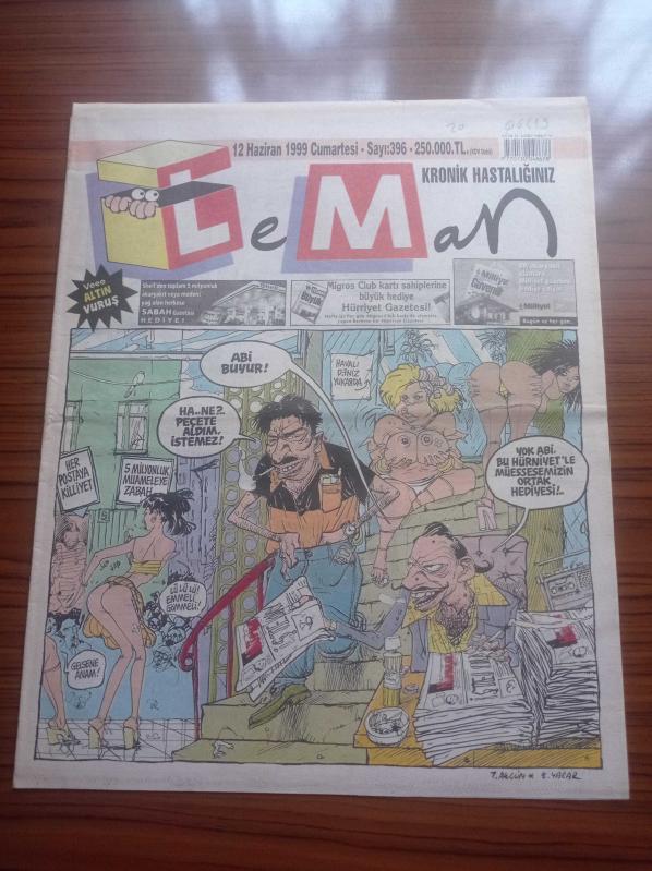 Leman Dergi Gazetesi - 12 Haziran 1999 - Can Yücel - Vedat Özdemiroğlu - Nihat Genç - Cezmi Ersöz - Hakan Şükür'ün Düğünündeydim - Tele Kulak Skandalı Birçok Üst Düzey Polis Şefinin Başını Yedi - ABD Konsolosluğu'na Saldıracaklar Zannıyla Sadık Mamat Ve Selçuk Akgül'e Yargısız İnfaz - MHP'li Ceyhan Belediye Başkanı Uğur Mumcu Bulvarının İsmini Değiştirerek Yumurtalık Bulvarı Yaptı - Rojin Konserine Yasak - Özal Baysal - Cavit Çağlar adlı eser Türkçe dilindedir.
