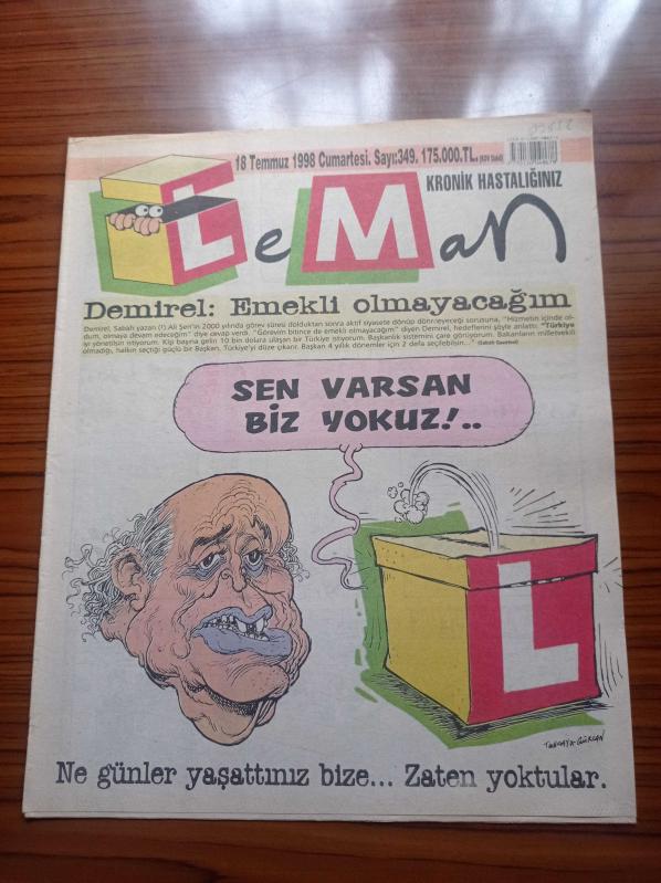Leman Dergi Gazetesi - 18 Temmuz 1998 - Cezmi Ersöz - Vedat Özdemiroğlu - Güneri İçoğlu - Can Yücel - Bahadır Baruter - Met Üst - Süleyman Demirel Emekli Olmayacağım - Mesut Yılmaz İsterse Hükümet Bozulsun Memura Buçuk Fazla Vermem - Turizm Balonu Söndü Magandalar Açıkta Kaldı - Baklava Çalan Çocuk adlı eser Türkçe dilindedir.