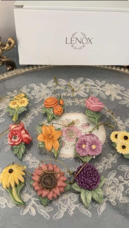 Lenox çiçek biblolar asma ipli koleksiyonluk el yapımı el boyama hepsi damgalıdır
