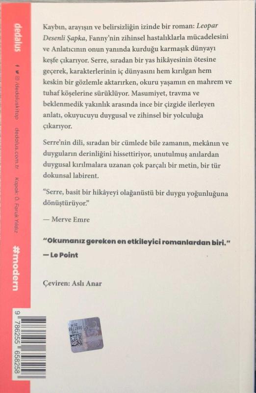 Leopar Desenli Şapka, Anne Serre tarafından kaleme alınmıştır. Kitap Dedalus tarafından yayınlanmıştır. Leopar Desenli Şapka adlı eser Türkçe dilindedir.