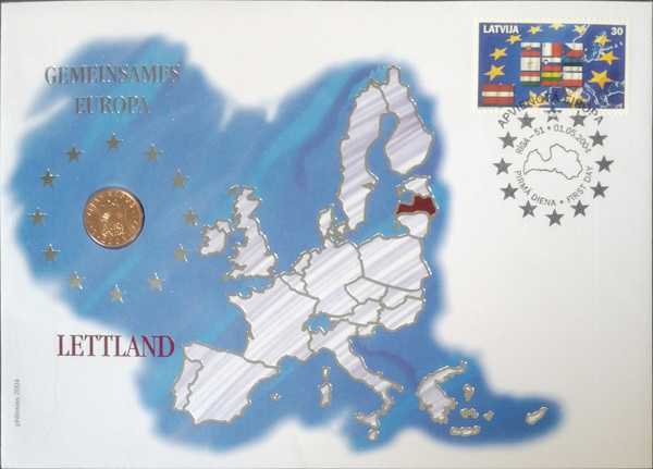 Letonya 1 Santims 2003, Damgalı Pullu Postadan Geçmiş Zarf