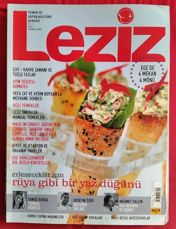 Kitap 2006 yılında yayınlanmıştır. 122 sayfadır. Leziz Yemek Dergisi Sayı 5 (Temmuz 2006) Vefa Zat ve Aydın Boysan'la Meyhane Sohbeti, Yaz Mevsimi ve Şarap, Vejetaryen ve Organik Tarifler adlı eser Türkçe dilindedir.