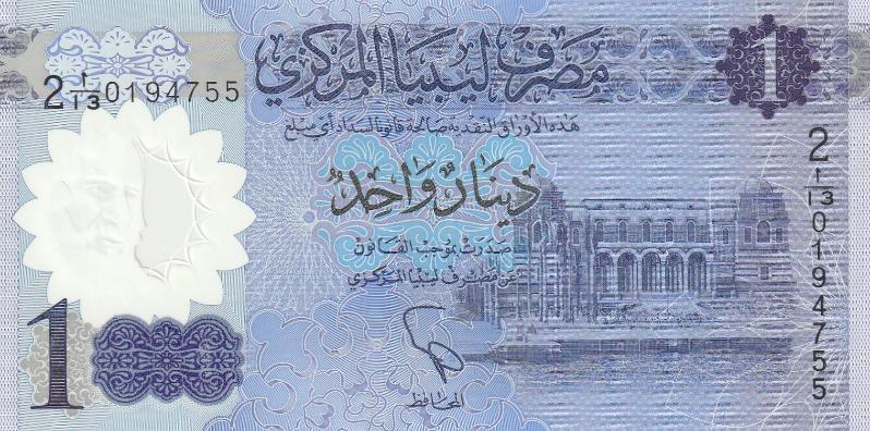 Libya, 1 Dinar, Çil, Polimer