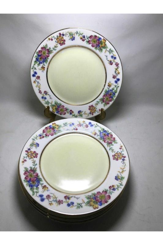 Limoges Pasta tabakları 6 adet 18,5 cm çapında başlıklı antika/koleksiyon objesinin menşei belirtilmemiştir. Objenin ait olduğu dönem bilinmeketedir.