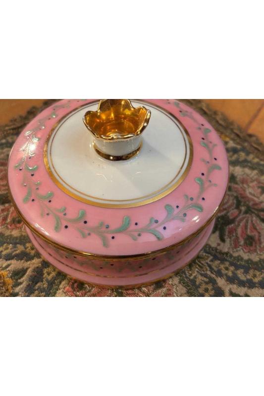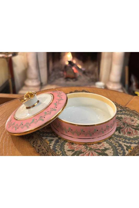 Limoges el boyama bonboniyer 10 cm çapında başlıklı antika/koleksiyon objesinin menşei belirtilmemiştir. Objenin ait olduğu dönem bilinmeketedir.