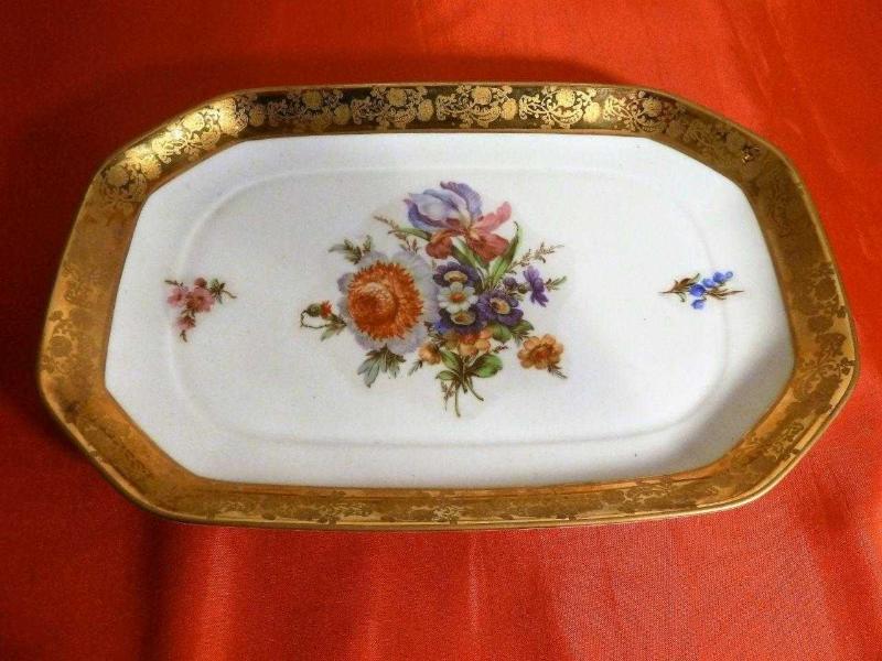 Limoges imzalı el boyaması altın varaklı tepsili porselen jardinier. 23x15cm, 1 yıl önce kitantik’te satışa sunulmuştur.