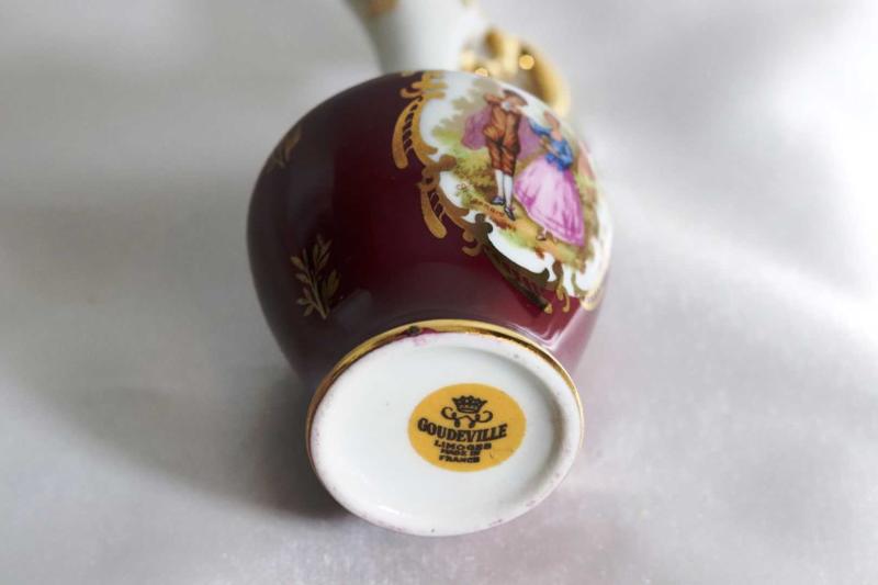 Limoges imzalı el boyaması porselen minyatür kulplu vazo. Y 12,5cm. başlıklı antika/koleksiyon objesinin menşei belirtilmemiştir. 1900-1949 arası dönemine aittir.
