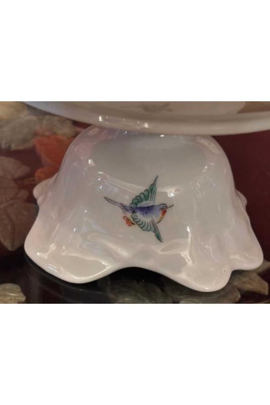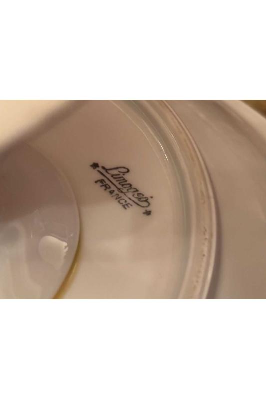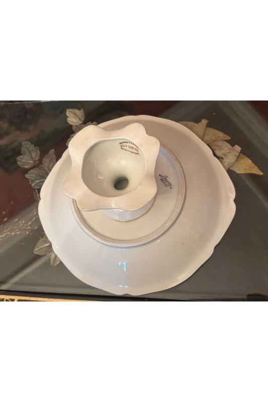 Limoges sunumluk 22 cm Çap 11 cm yüksekliğinde başlıklı antika/koleksiyon objesinin menşei belirtilmemiştir. Objenin ait olduğu dönem bilinmeketedir.