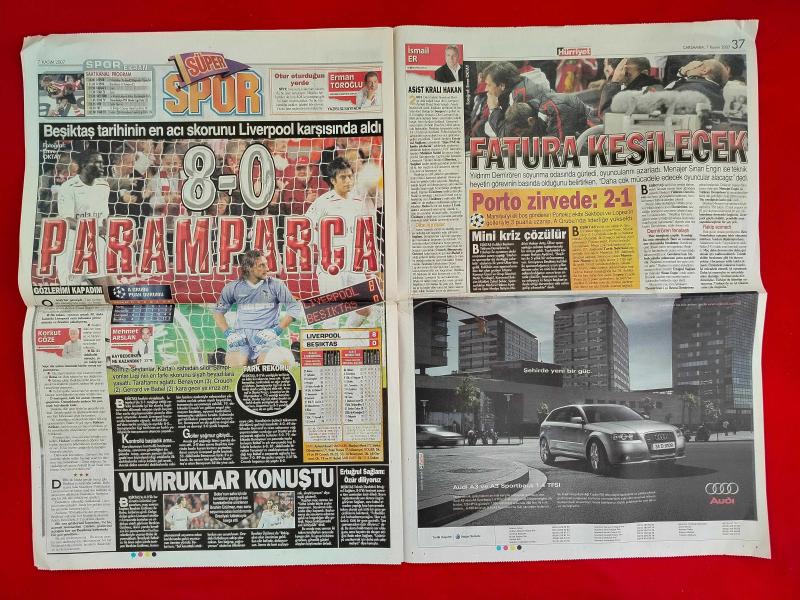 Liverpool 8-0 Beşiktaş - 7 Kasım 2007 - Hürriyet Gazetesi - Spor Sayfaları Tam