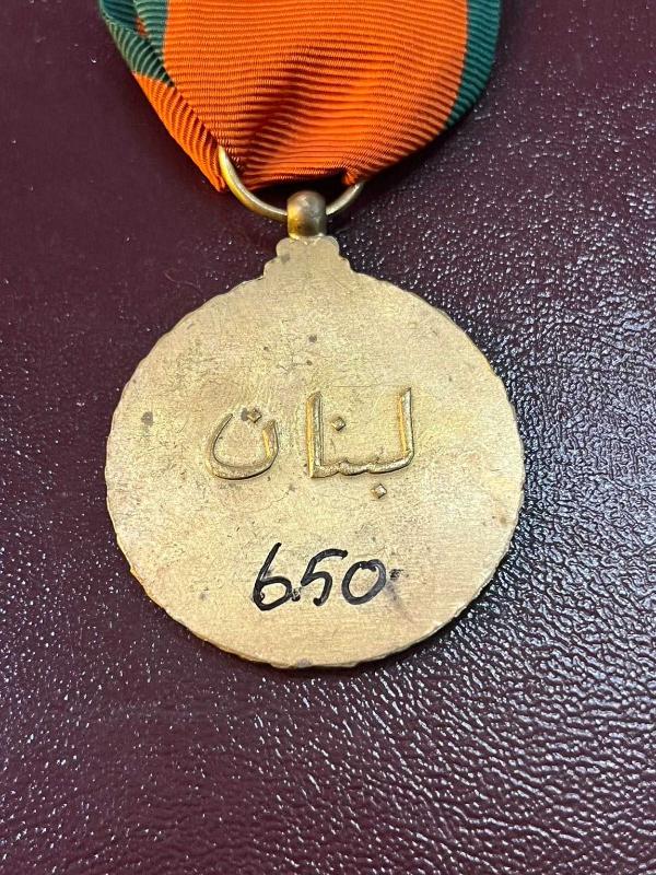Lübnan madalya başlıklı antika/koleksiyon objesinin menşei belirtilmemiştir. 1940 sonrası dönemine aittir.