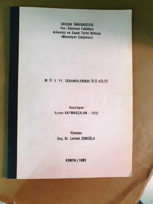M. Ö. V. Y.Y. SERAMİKLERİNDE ÖLÜ KÜLTÜ / Mezuniyet Çalışması, Hazırlayan: Aysun Kaymakçalan tarafından kaleme alınmıştır. Eser Yöneten: Levent Zoroğlu editörlüğünde hazırlanmıştır. Kitap 1985 yılında Selçuk Üniversitesi tarafından [Konya] yayınlanmıştır. 43 sayfadır. M. Ö. V. Y.Y. SERAMİKLERİNDE ÖLÜ KÜLTÜ / Mezuniyet Çalışması adlı eser Türkçe dilindedir.