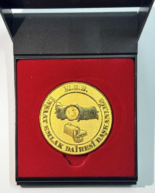 M.S.B. Milli Savunma Bakanlığı İnşaat Emlak Dairesi Başkanlığı Hatıra Madalyonu Kutulu Koleksiyonluk, en son 5 saat önce güncellenmiştir.