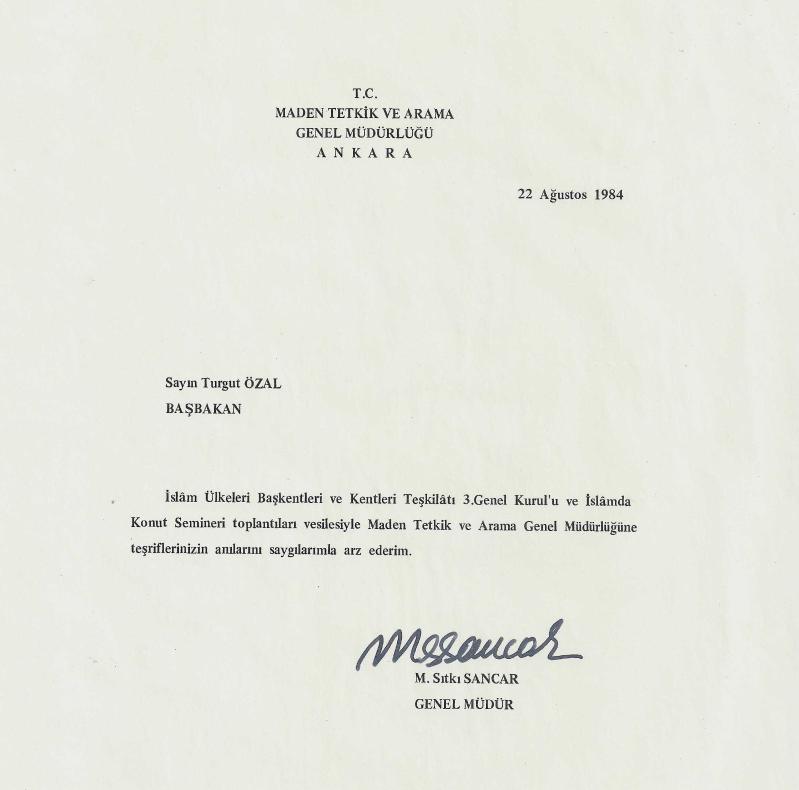M.T.A. GENEL MÜDÜRÜ M.SITKI SANCAR ISLAK İMZALI TURGUT ÖZAL'A YAZI..., en son 6 ay önce güncellenmiştir.