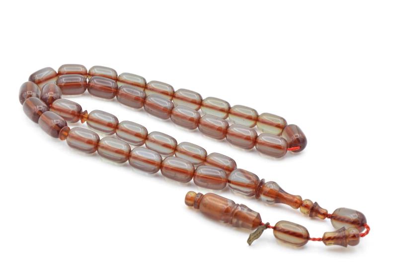 M.Tacir Usta İmzalı Kapsül Kesim Şeffaf Delim Mavi Ateş Kehribar Tesbih başlıklı antika/koleksiyon objesi Türkiye menşe’lidir. 2000 ve sonrası dönemine aittir.