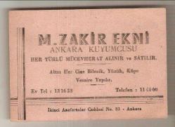 M.ZAKİR EKNİ ANKARA KUYUMCUSU KARTVİZİTİ...