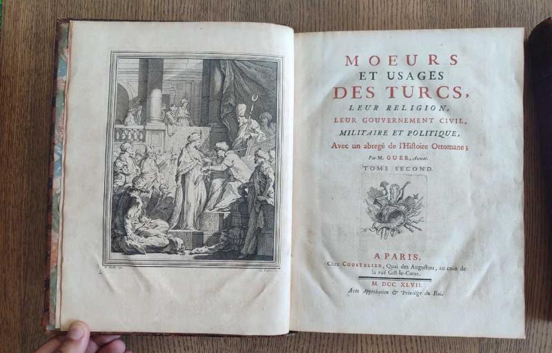 2 cilt eksiksizdir. Büyük boy… İçerik: • Osmanlı toplumunun adet ve gelenekleri, dini hayatı, sivil, askerî ve siyasî teşkilâtı hakkında bilgiler. • Giriş kısmında Osmanlı tarihine dair kısa bir özet (abrégé de l’histoire ottomane). • Bakır gravürler Osmanlıların günlük hayatı, dini pratikleri, hukuki yapıları, askerî teşkilâtı ve devlet düzeni.