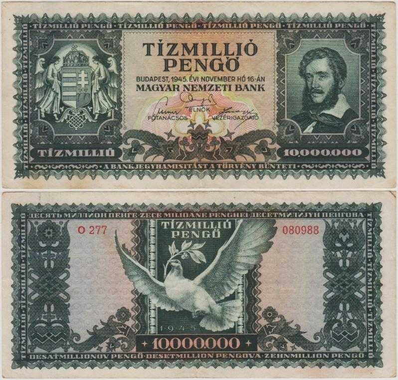 MACARİSTAN 10.000.000 PENGÖ 1945 II. DÜNYA SAVAŞI SONRASI HİPERENFLASYON DÖNEMİ. ÇOK TEMİZ, en son bir ay önce güncellenmiştir.