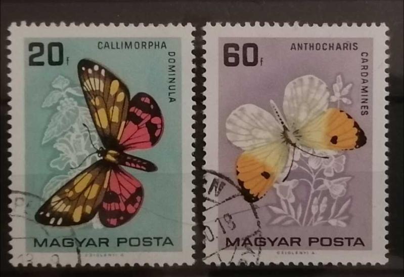 1. Callimorpha Dominula (20 Fillér) Yıl: 1960'ların başı (Genellikle bu tasarımlar 1961-1962 serisidir). Konu: Halk arasında "Gelin Güvesi" olarak da bilinen, Avrupa'ya özgü renkli bir güve türü olan Callimorpha dominula resmedilmiştir. Detay: Yeşil arka plan üzerindeki bitki çizimiyle türün doğal habitatına vurgu yapılmıştır. 2. Anthocharis Cardamines (60 Fillér) Yıl: Aynı serinin bir parçası. Konu: "Turuncu Uçlu Kelebek" (Anthocharis cardamines) olarak bilinir. Erkeklerinin kanat uçlarındaki o karakteristik turuncu leke pulda çok net şekilde görülmektedir. Detay: Mor/lavanta tonlarındaki arka plan, kelebeğin beyaz ve turuncu renklerini çok güzel öne çıkarıyor. Maddi Değer ve Koleksiyon Durumu Piyasa Değeri: Bu pullar damgalı (Used) durumdadır ve oldukça yaygındır. Tekil olarak değerleri yaklaşık 0,10 € - 0,20 € (yaklaşık 5TL - 10 TL) arasındadır.