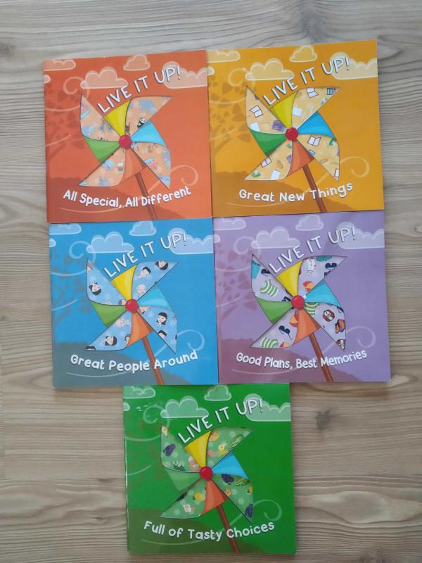 1. Kitap : Live İt Up Good Plans , Best Memories 2. Kitap : Live İt Up Full Of Tasty Choices 3. Kitap : Live İt Up Great People Around 4. Kitap : Live İt Up Great New Things 5. Kitap : Live İt Up All Special , All Different Sayfa Sayısı : Kitapların Herbiri 32 Sayfadır Baskı Tarihi : 2018 İstanbul Durumu : Çok İyi Yayınevi : Macenta Publishing
