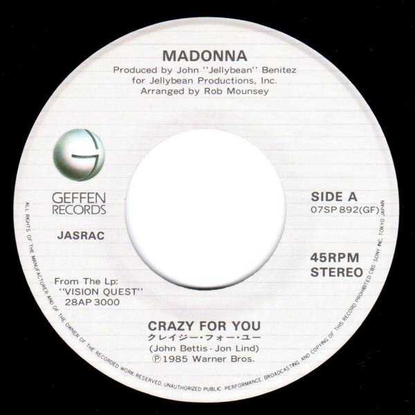 MADONNA - Crazy For You / I'll Fall in Love Again - Japonya 1985 Basım 45lik Plak, dün satışa sunulmuştur.