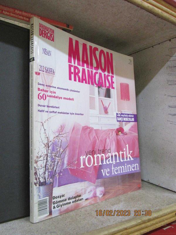 MAISON FRANÇAISE NİSAN 1999 SAYI 47 GENÇ EVLERİNE EKONOMİK ÇÖZÜMLER BAHAR İÇİN 60 SANDELYE MODELİ DUVAR BORDÖRLERİ YENİ TREND ROMANTİK VE FEMİNEN..212 SAYFA ÇOK TEMİZ.
