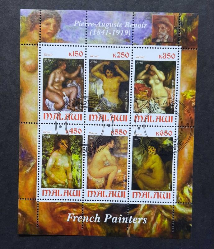 MALAVİ 2010 Renoir NÜ Tablolar konu CTO Damgalı BLOK Pul içerisinde 6 adet tablo görşeli pul, en son 6 saat önce güncellenmiştir.