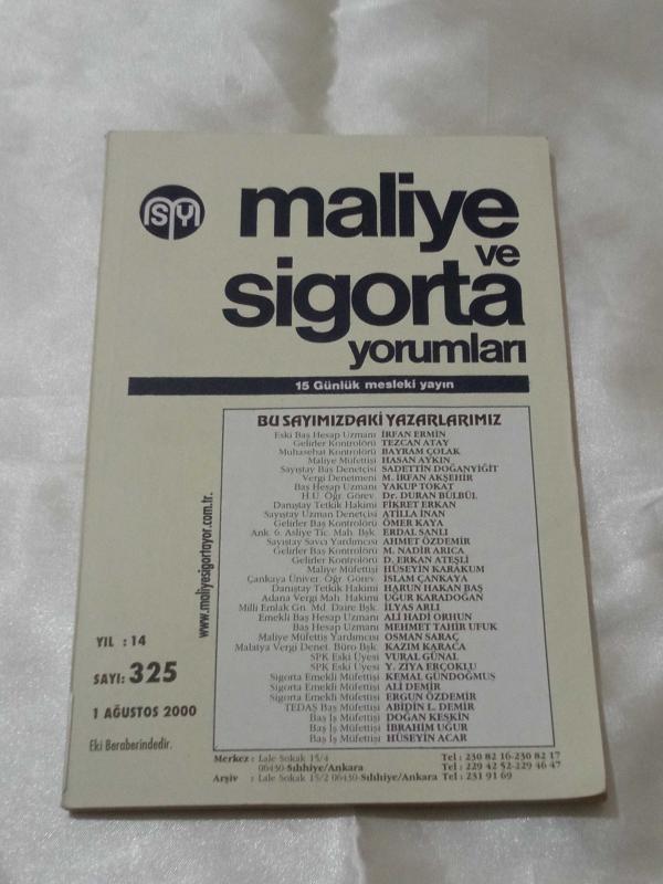 Kitap [ANKARA] yayınlanmıştır. 144 sayfadır. MALİYE VE SİGORTA YORUMLARI SAYI 325 1 Ağustos 2000 adlı eser Türkçe dilindedir.