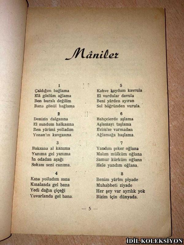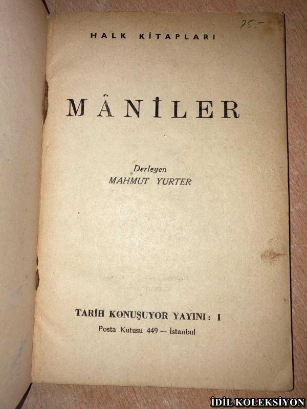 MANİLER / MAHMUT YURTER / HALK KİTAPLARI / TARİH KONUŞUYOR YAYINI / VAROL MATBAASI / TÜRKÇE KİTAP