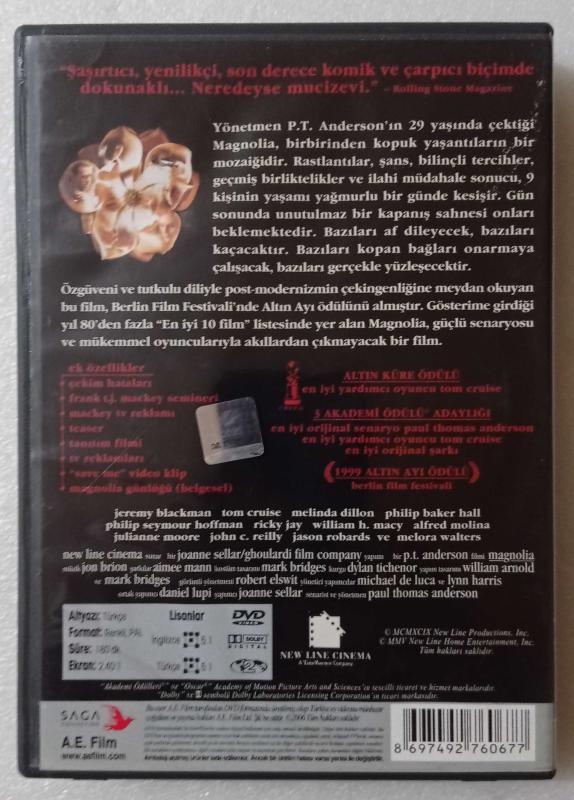 MANOLYA / Magnolia • Tom Cruise ~ [ KOLEKSİYONER VERSİYON - 2 DİSC ] başlıklı ürün, Efemera, Müzik, Sinema > Sinema, Film, Dizi > DVD > Yabancı DVD kategorisi altında İkinci El olarak satılmaktadır.