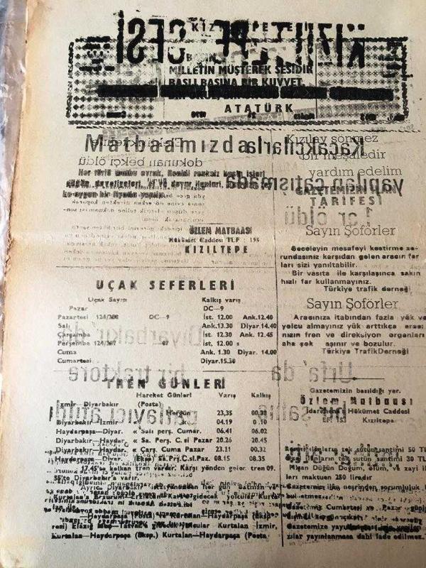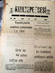 MARDİN KIZILTEPE SESİ BAĞIMSIZ SİYASİ GAZETE -YEREL TAŞRA BASINI- 25 MAYIS 1653- Kaçakçılarla yapılan çatışmada 1 er öldü -Urfa da bir şahıs intihar etti Elektrik teline dokunan bekçi öldü -Diyarbakır 'da bir traktöre patlayıcı atıldı - Yıpranma, sararmalar, kupon kesiği ve yırtılmalar zamana bağlı olarak görülebilir.