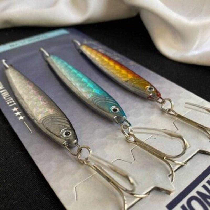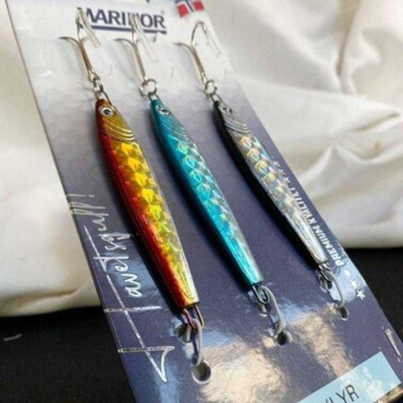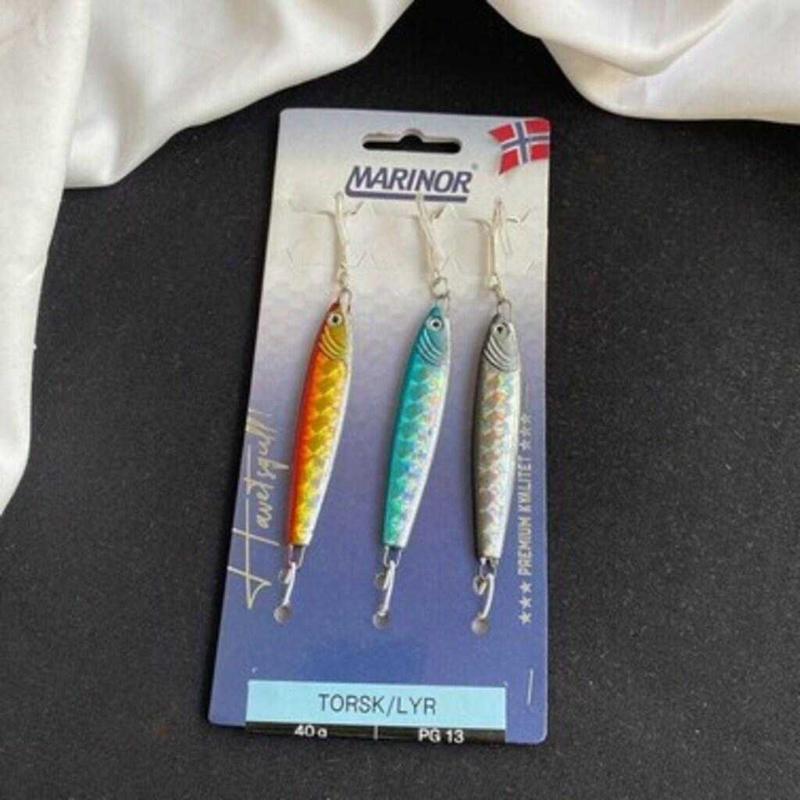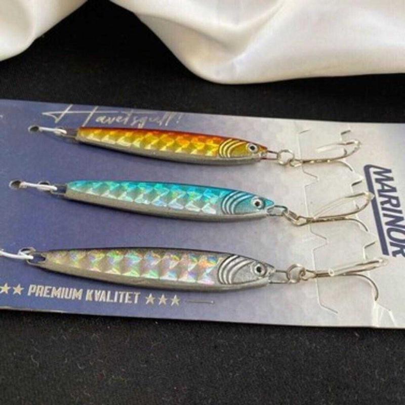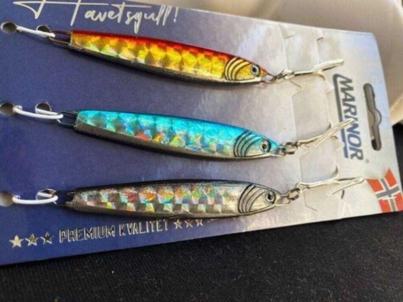 Norveç firması Marinor tarafından üretilen premium kalite balık kancası seti. Set, morina ve türevleri balıkçılığı için 3 parça döküm yemi içeriyor. Gümüş kırmızısı, gümüş mavisi ve gümüş grisi. Birkaç yıl önce Norveç'ten alındı ve orijinal üretimdir. Yeni ve açılmamıştır. Uzunluk: 11 cm (her biri) Ağırlık: 35 gr/adet Barkod: 7024193516615 - 7024193503400 Ürün Kodu: 350340