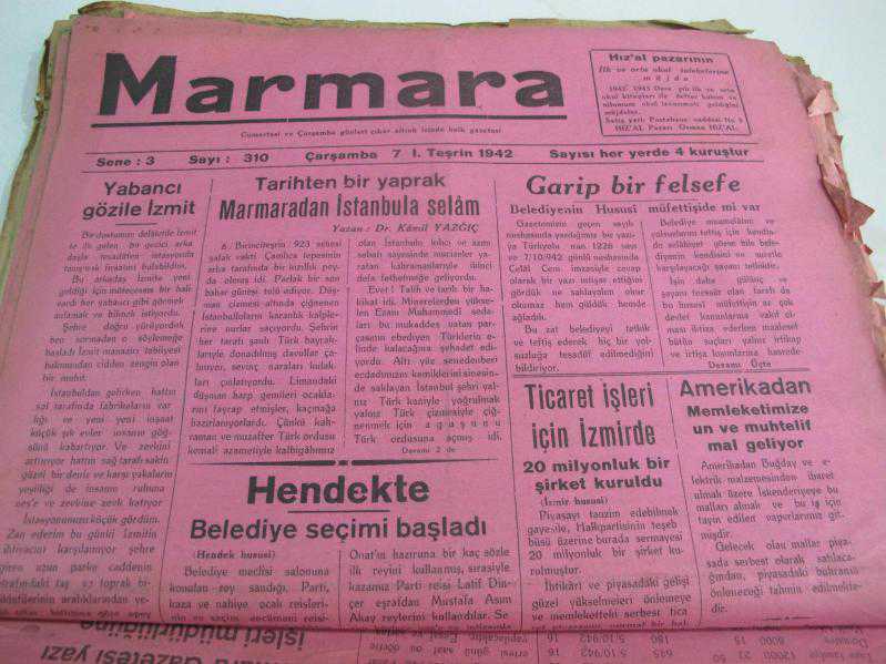 MARMARA HASAN ÖMER ERİM İZMİT 7,1 .TEŞRİN 1942 SAYI 310 SAYFA 4