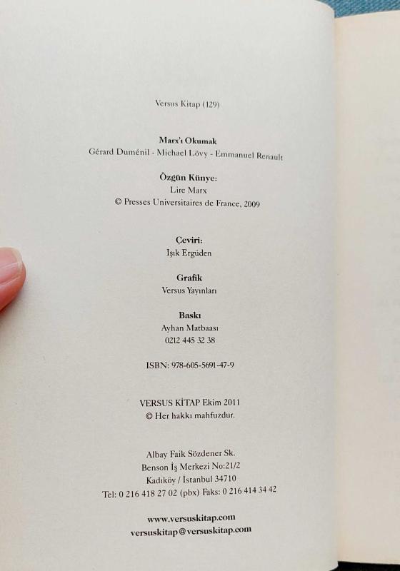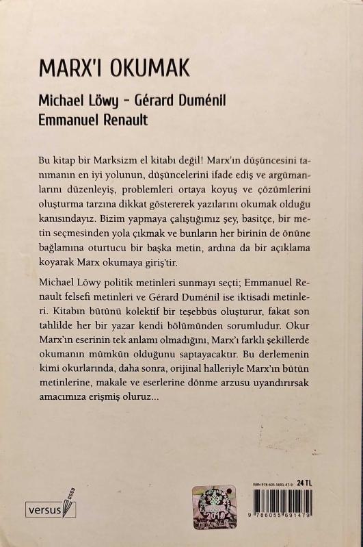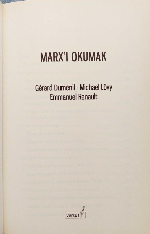 MARX'I OKUMAK, MİCHAEL LÖWY - GERARD DUMENİL - EMMANUEL RENAULT tarafından kaleme alınmıştır. Kitap 2011 yılında VERSUS KİTAP tarafından [İSTANBUL] yayınlanmıştır. Satışta olan kitap, yayınevinin 1. baskısıdır. Bu baskının çevirisi IŞIK ERGÜDEN tarafından yapılmıştır. 344 sayfadır. MARX'I OKUMAK adlı eser Türkçe dilindedir.