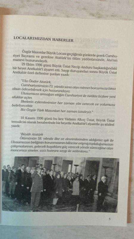 MASON DERGİSİ - EKİM 1996 SAYI: 100 NECİP ARİDURU - MURAT ÖZGEN AYFER - YALÇIN İLTER - YALÇIN KAYA - AHMET ÖZBEK - RENAN MENGÜ - BÜLENT GÜRKAN - IŞIK ÖZPEKER - TEMUÇİN CAN - ADNAN AKYARLI - TAMER DEMİRAĞ - METİN YORGANÇIOĞLU - SELÇUK UÇKU - ÖNDER TUZCU - KUBİLAY KEÇELİOĞLU - UĞUR ORAL - NERMİN RÜSTEM - BAHA ÇALT - HAYDAR Ö. ALTINOK BÜYÜK ÜSTADIN MESAJI - ATATÜRK'ÜN GENÇLİĞE HİTABESİ - LOCALARIMIZDAN HABERLER - İNSANIN EVRİMSEL GELİŞİMİNDE BİLİMİN YERİ - BAŞLANGIÇ: FİZİKLE METAFİZİĞİN BİRLEŞTİĞİ YER - SANAT FELSEFESİ - SİMGESEL DERECELERDEN SONRA - YENİ YÜZYILIN KOD ADI: PARADOKS - YARATICILIK VE ÇAĞDAŞLIK - İSKOÇ RİTİNİN BAZI GERÇEKLERİ - 6 - NURİ RÜSTEM'İN ARDINDAN - SONSUZA DOĞUYA GÖÇEN KARDEŞLERİMİZ - TAM TAKIM EKSİKSİZ 68 SAYFA, REVUE MAÇONNIQUE tarafından kaleme alınmıştır. MASON DERGİSİ - EKİM 1996 SAYI: 100 NECİP ARİDURU - MURAT ÖZGEN AYFER - YALÇIN İLTER - YALÇIN KAYA - AHMET ÖZBEK - RENAN MENGÜ - BÜLENT GÜRKAN - IŞIK ÖZPEKER - TEMUÇİN CAN - ADNAN AKYARLI - TAMER DEMİRAĞ - METİN YORGANÇIOĞLU - SELÇUK UÇKU - ÖNDER TUZCU - KUBİLAY KEÇELİOĞLU - UĞUR ORAL - NERMİN RÜSTEM - BAHA ÇALT - HAYDAR Ö. ALTINOK BÜYÜK ÜSTADIN MESAJI - ATATÜRK'ÜN GENÇLİĞE HİTABESİ - LOCALARIMIZDAN HABERLER - İNSANIN EVRİMSEL GELİŞİMİNDE BİLİMİN YERİ - BAŞLANGIÇ: FİZİKLE METAFİZİĞİN BİRLEŞTİĞİ YER - SANAT FELSEFESİ - SİMGESEL DERECELERDEN SONRA - YENİ YÜZYILIN KOD ADI: PARADOKS - YARATICILIK VE ÇAĞDAŞLIK - İSKOÇ RİTİNİN BAZI GERÇEKLERİ - 6 - NURİ RÜSTEM'İN ARDINDAN - SONSUZA DOĞUYA GÖÇEN KARDEŞLERİMİZ - TAM TAKIM EKSİKSİZ 68 SAYFA adlı eser Türkçe dilindedir.