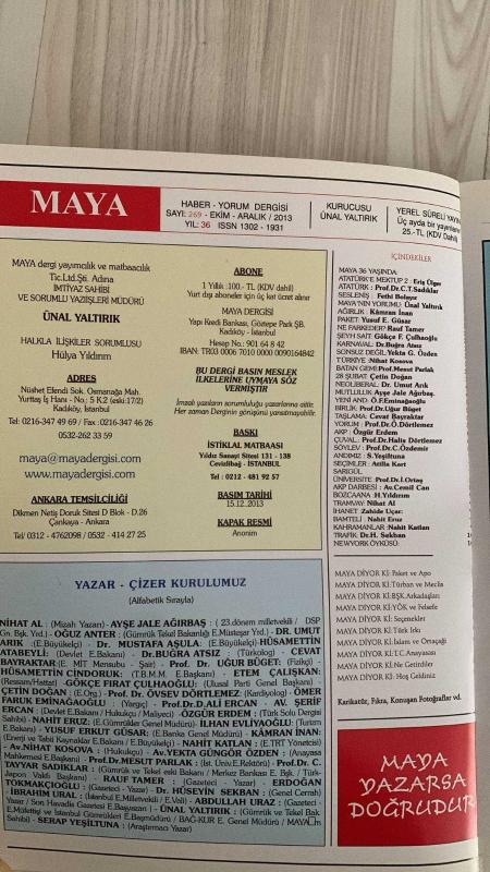 MAYA DERGİSİ -EKİM ARALIK - 2013– SAYI 269– 106 SAYFA - 36 YILDIR AYAKTA DURABİLEN TEK DERGİ - RABBİM ŞAHİTTİR NE DEDİYSE YAPTIM - YENİ YILINIZ KUTLU OLSUN - ATATÜRK’E MEKTUP - ATATÜRK - SESLENİŞ - MAYA’NIN YORUMU - AĞIRLIK - PAKET - NE FARKEDER - ŞEYH SAİT - KARNAVAL - SONSUZ DEĞİL - TÜRKİYE - BATAN GEMİ - 28 ŞUBAT - NEOLİBERAL - MUTLULUK - YENİ AND - BİRLİK - TAŞLAMA - YORUM - AKP - ÇUVAL - SÖYLEV - ANDIMIZ - SEÇİMLER - ÜNİVERSİTE - AKP DARBESİ - BOZCAADA - TRAMVAY - İHANET - BAMTELİ - KAHRAMANLAR - TRAFİK - NEW YORK ÖYKÜSÜ - ATATÜRK COŞKUSU - KONUŞAN FOTOĞRAFLAR - GÖRÜŞ AĞIRLIK MERKEZİ - ÜNAL YALTIRIK - HÜLYA YILDIRIM - ERİŞ ÜLGER - C. TAYYAR SADIKLAR - FETHİ BOLAYIR - KÂMRAN İNAN - YUSUF ERKUT GÜSAR - RAUF TAMER - GÖKÇE FIRAT ÇULHAOĞLU - BUĞRA ATSIZ - YEKTA GÜNGÖR ÖZDEN - NİHAT KOSOVA - MESUT PARLAK - ÇETİN DOĞAN - UMUT ARIK - AYŞE JALE AĞIRBAŞ - ÖMER FARUK EMİNAĞAOĞLU - UĞUR BÜGET - CEVAT BAYRAKTAR - ÖVSEV DÖRTLEMEZ - ÖZGÜR ERDEM - HALİS DÖRTLEMEZ - C. ÖZDEMİR - SERAP YEŞİLTU adlı eser, Kitap > Süreli Yayınlar > Dergiler > Siyaset kategorisinde İkinci El olarak satıştadır.