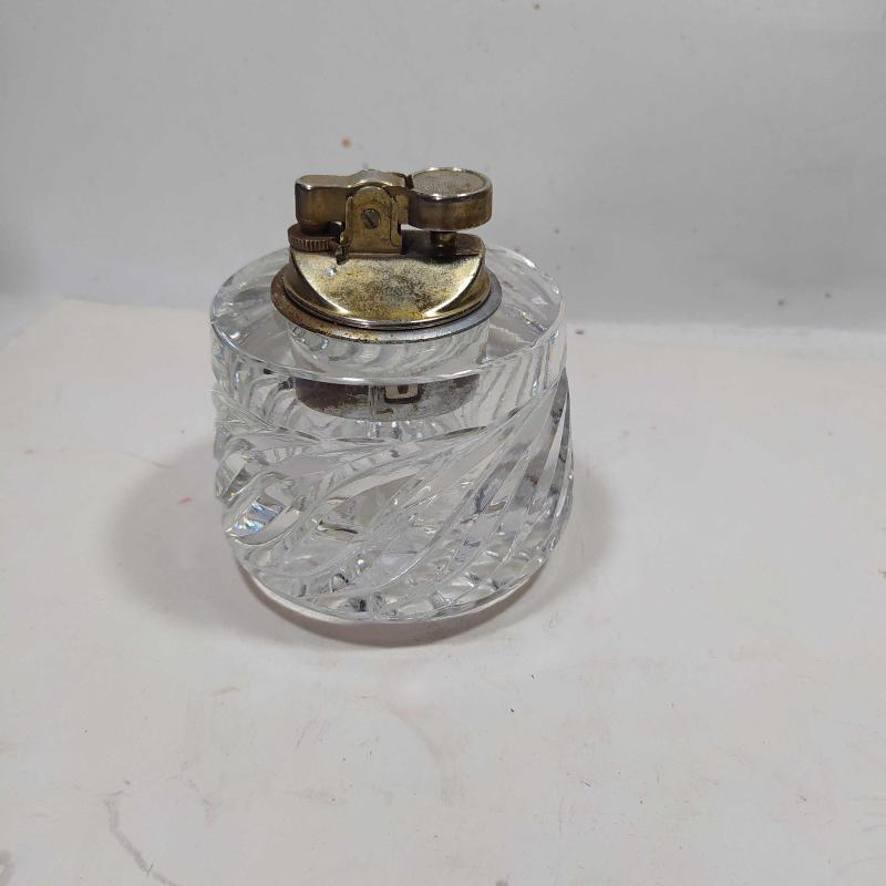 MÇ4---CAM KAİDELİ ESKİ GAZLI MASA ÇAKMAĞI--ARIZALI başlıklı antika/koleksiyon objesinin menşei belirtilmemiştir. Objenin ait olduğu dönem bilinmeketedir.